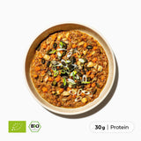 Du liebst den Eintopf von Oma? Wir machen ihn fit für deine Muskeln! Unser herzhafter Berglinseneintopf bringt Begeisterung in die vegane Küche. Mit knackigen Kürbiskernen.